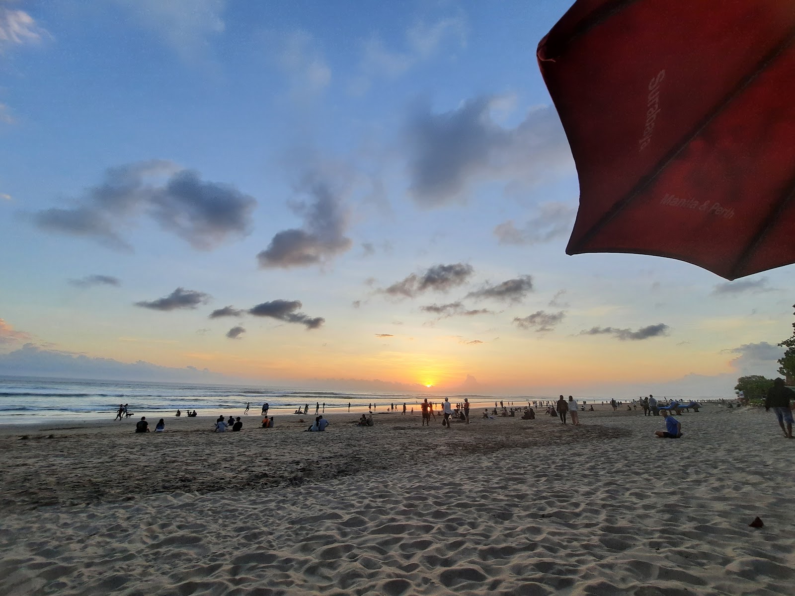 Double Six Beach, sitting between Seminyak and Legian, is where Bali’s sunset culture thrives. As the day winds down, colorful beanbags and umbrellas line the sand, creating a laid-back festival vibe. Travelers sip cocktails, snack on grilled corn, and watch the horizon melt into fiery hues.